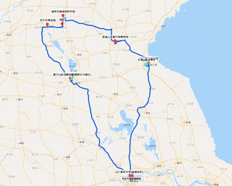 外出访学考察是我院书法专业教学的常规活动之一。本次访学考察,由一位不愿透露姓名的热心企业家全程赞助;主体成员由在校三届书法专业硕士生和部分在宁毕业生组成,邀请我院8位中青年教师加盟,随队配备队医。师生一行35人,五天之内,辗转连云港、临沂、曲阜、济宁、徐州各地,行程1300公里。由于行前做了充分准备,方小壮老师为此次考察进行总动员,并针对考察对象作了“笔法起源与隶书笔法”的专题讲座,详细区分汉篆、古隶、汉隶、八分书之别;同时,又有各地毕业生与家长、书协与文旅部门领导的精心导航和热情接待,行程紧凑而丰富,圆满完成了本次预定的访学考察任务。