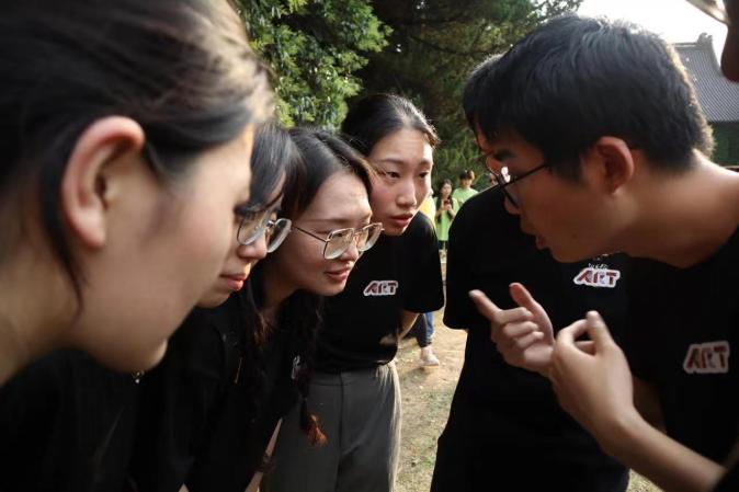随后,队伍们在主持人张雨昕姚越、刘航同学的带领下来到东大楼草坪前,正式开始了运动趣味赛。比赛采取积分制,各组通过参与各项赛事进行积分,按整组积分高低顺序发放相应奖品。现场举办了多场精彩的趣味运动项目,如济济艺堂(人物 quiz)、艺五艺十(一块五毛)、艺触即发(木头人)、两位艺体(两人三足)、艺孔之见(我的组长在哪里)、艺言为定(趣味毽子)、别具艺格(趣味跳绳)和艺诺千金(趣味拔河)等。每个队伍都充满热情地展现自己的实力,积极参与其中,高呼口号,挥洒汗水,充分展现了艺术学院师生之间紧密的团结互助精神。整个运动会现场洋溢着欢声笑语和青春活力的气息,让人感受到了大家庭的温暖和凝聚力。