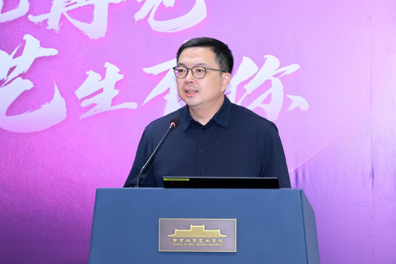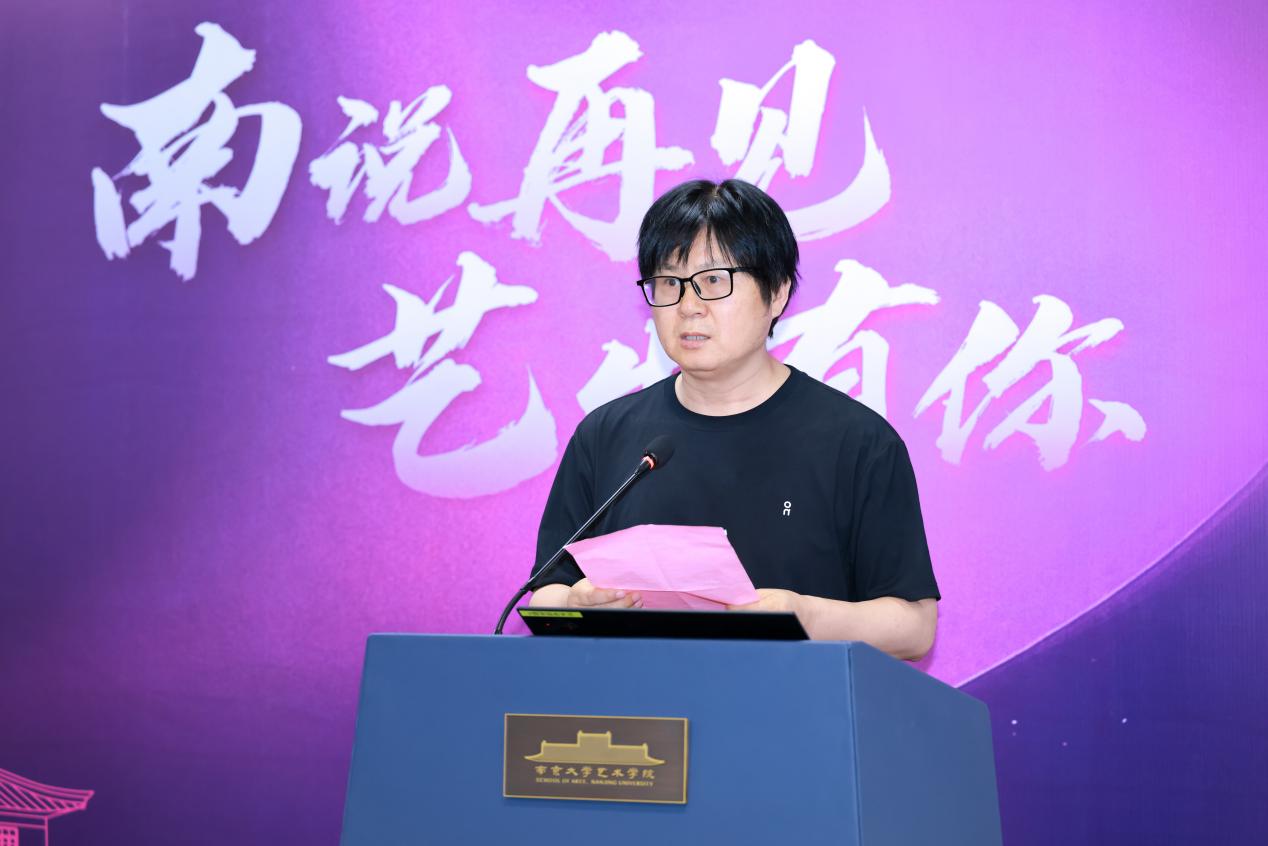 嘉宾寄语,情深意长。南京大学兼职教授、全国教育书画协会名誉会长兼全国高等书法教育分会会长言恭达先生,南京大学硕士研究生行业导师、江苏省政府参事、江苏省书法家协会副主席刘灿铭先生,以及江苏省文化馆党总支书记、馆长赵彦国先生作为嘉宾代表发表致辞,向毕业生致以热烈祝贺和美好祝愿。言恭达先生勉励毕业生,要铸造成长力,开拓创造力,并坚定文化自信。刘灿铭先生结合自身跨界经历,倡导毕业生尝试跨界融合,坚持终身学习,注重德艺双修等等。赵彦国先生分享了与南大艺术学院的深厚渊源,期待毕业生积极播撒美育星火,在不同领域守护艺术的光芒。