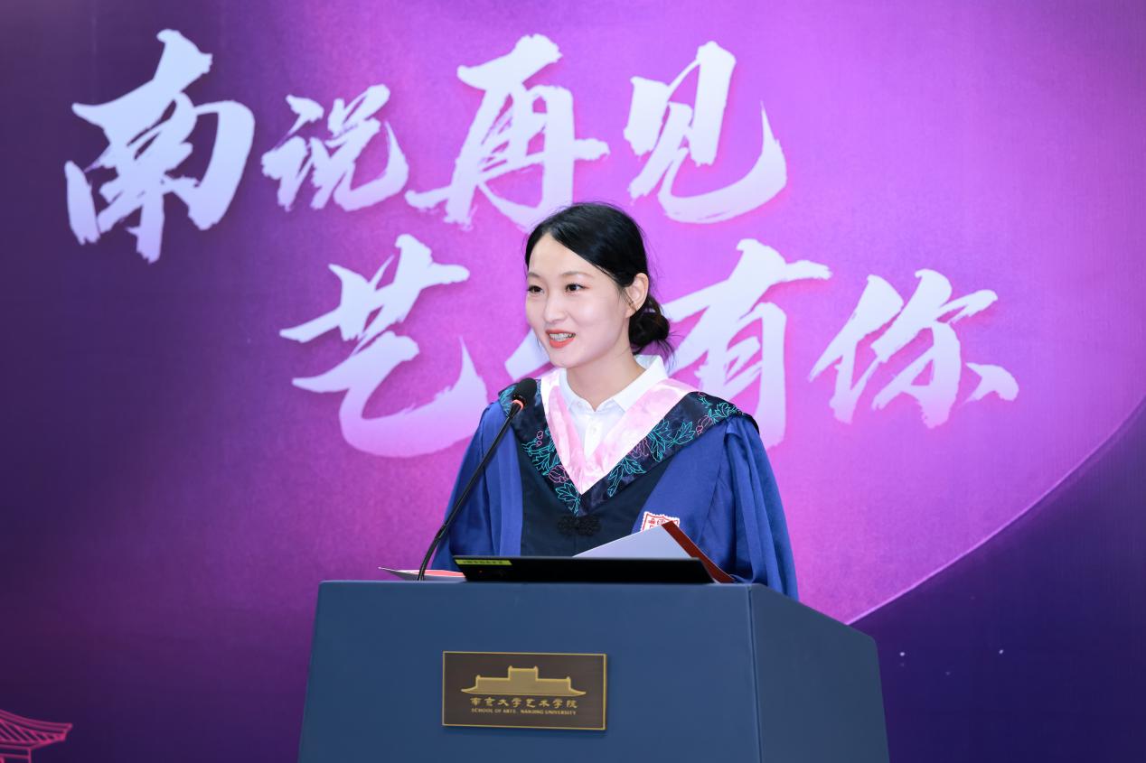 学子心声,感恩奋进。2025届艺术文化学专业硕士研究生、南京大学“优秀毕业生”刘航同学代表全体毕业生发言。她深情致谢母校、恩师、家人与同窗的培育、教导和支持。回望三年时光,她深感在艺术学院的学习不仅磨炼技艺,更锤炼思想,深刻体悟到真正的艺术应扎根生活、回应时代、照亮人心。展望未来,她呼吁同学们肩负起文化传承与创新的使命,以“传承者”的自觉、“教育者”的担当和“创新者”的勇气,努力在各自的领域守护文化根脉,真正成为“懂艺术的思想者”和“有思想的艺术家”。