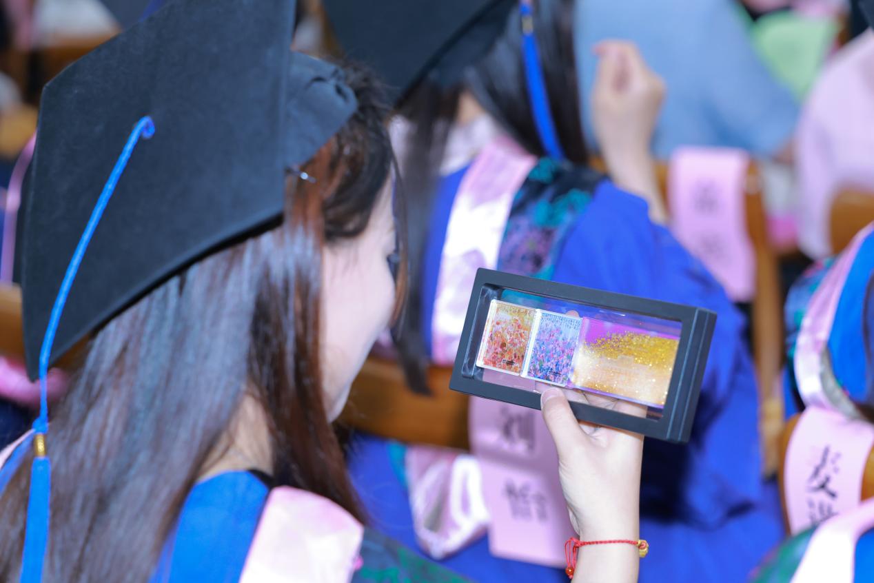 典礼最激动人心的学位授予仪式将现场气氛推向高潮。毕业生们身着庄重的学位服,依次有序上台。导师们为毕业生颁发毕业证书,赵奎英院长为每一位毕业生拨穗正冠,象征着学业的圆满完成与新征程的开启。过去的勤奋与沉淀,在一纸毕业证书与一抹笑容中得到见证,并将永远激励艺术学院学子追逐梦想,砥砺前行。